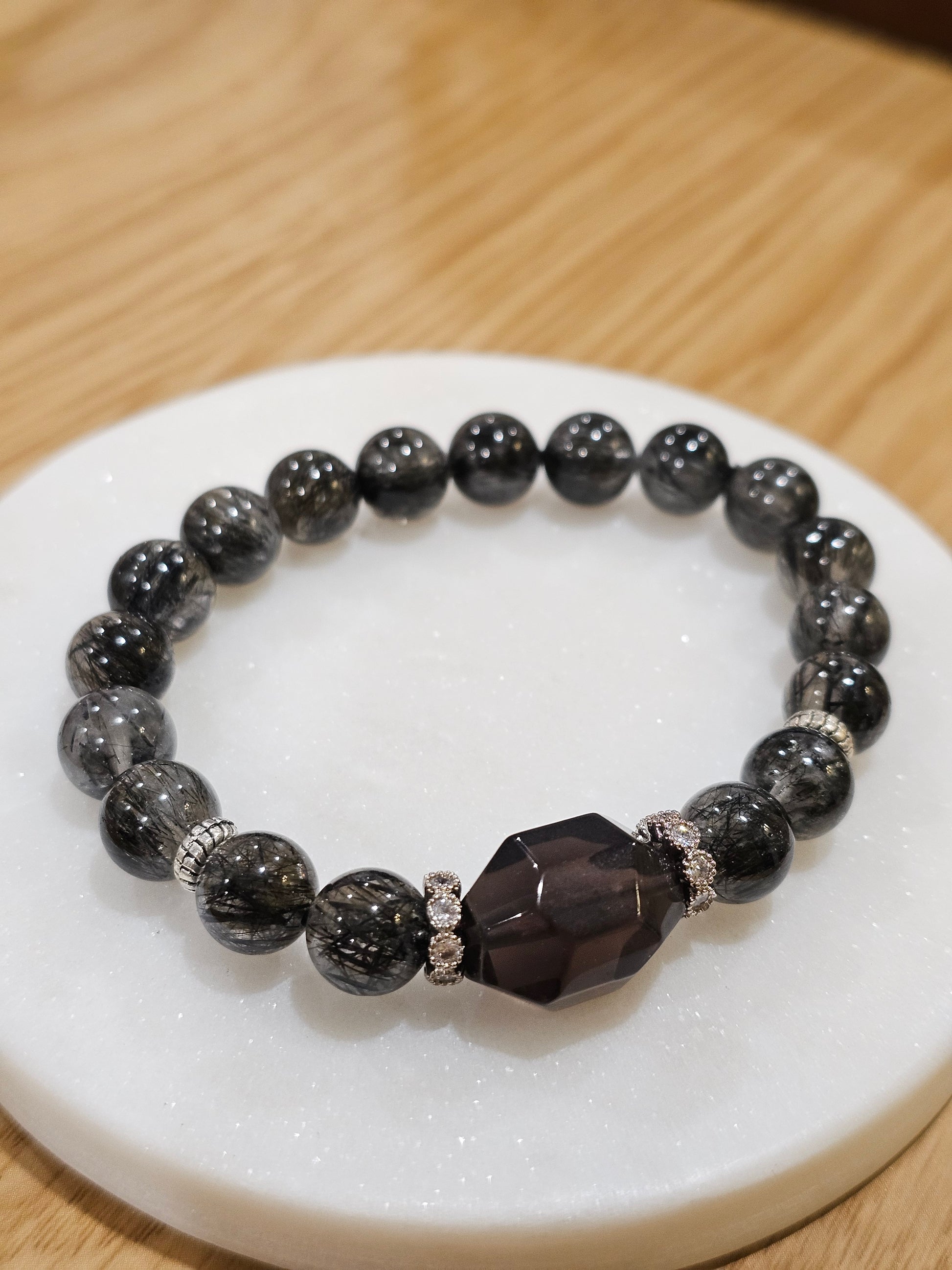 Black Rutilated Quartz × Smoky Quartz Bracelet 9.2mm