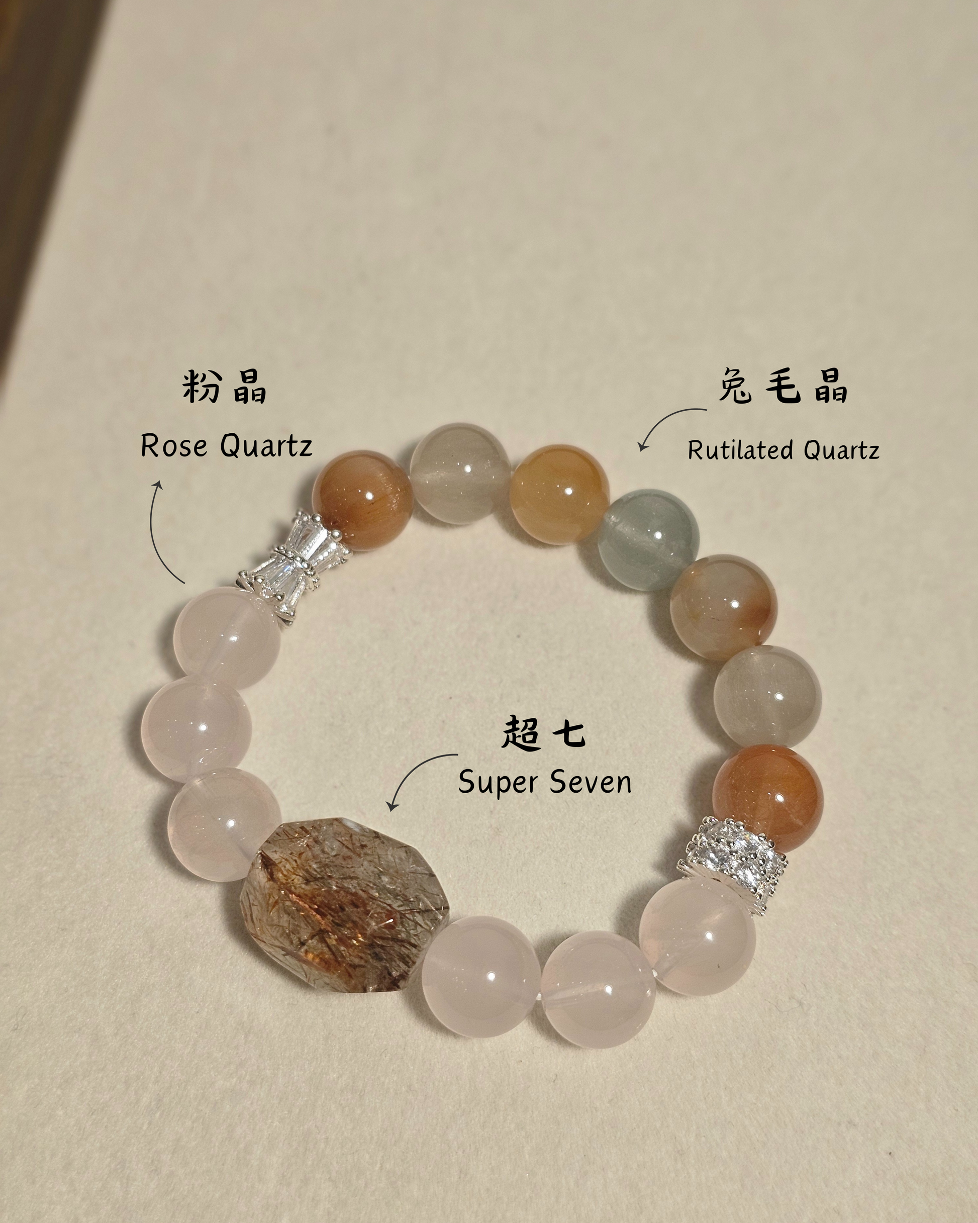 Rose Quartz × Super Seven × Rabbit Hair Quartz Bracelet 10mm