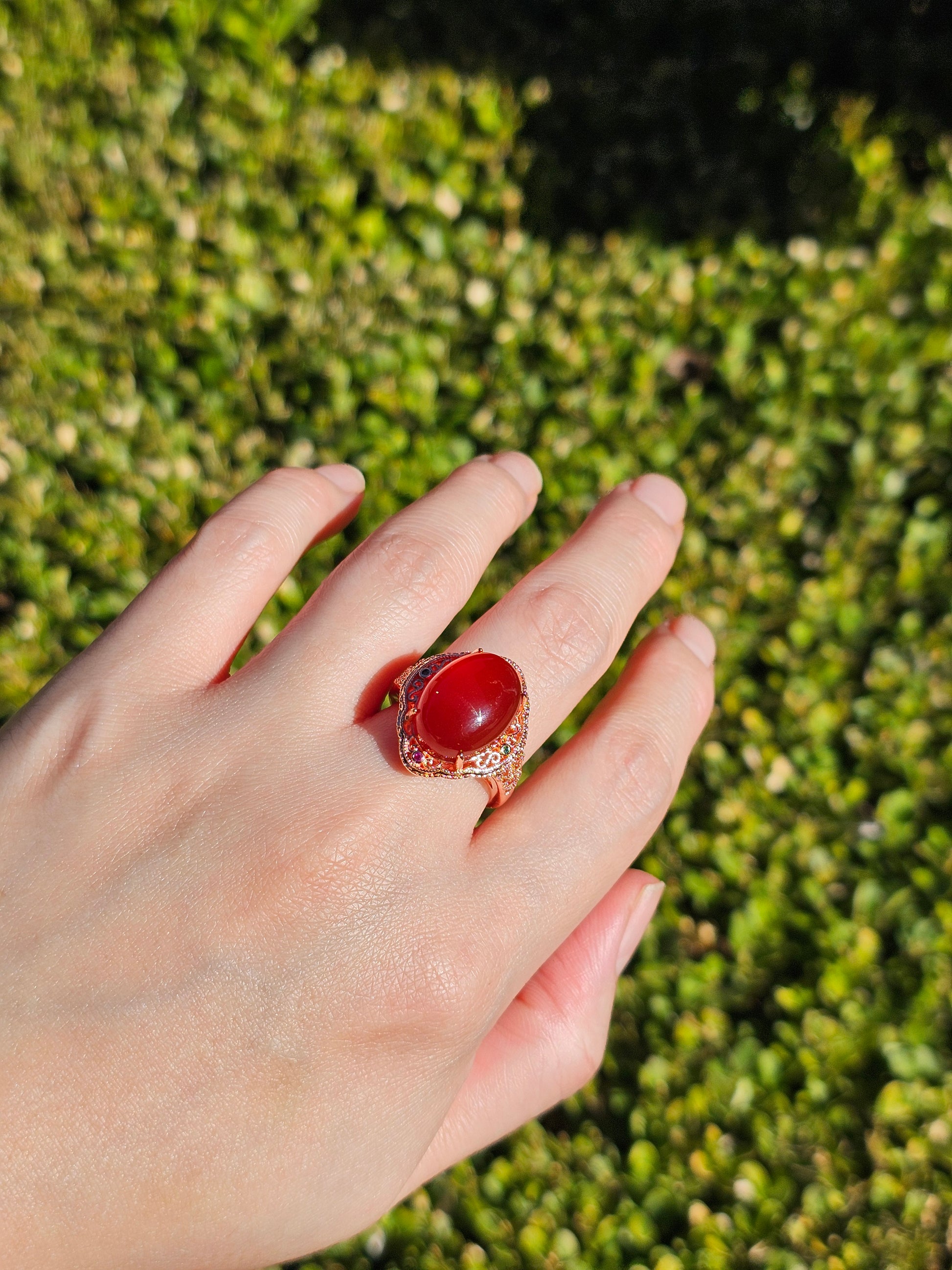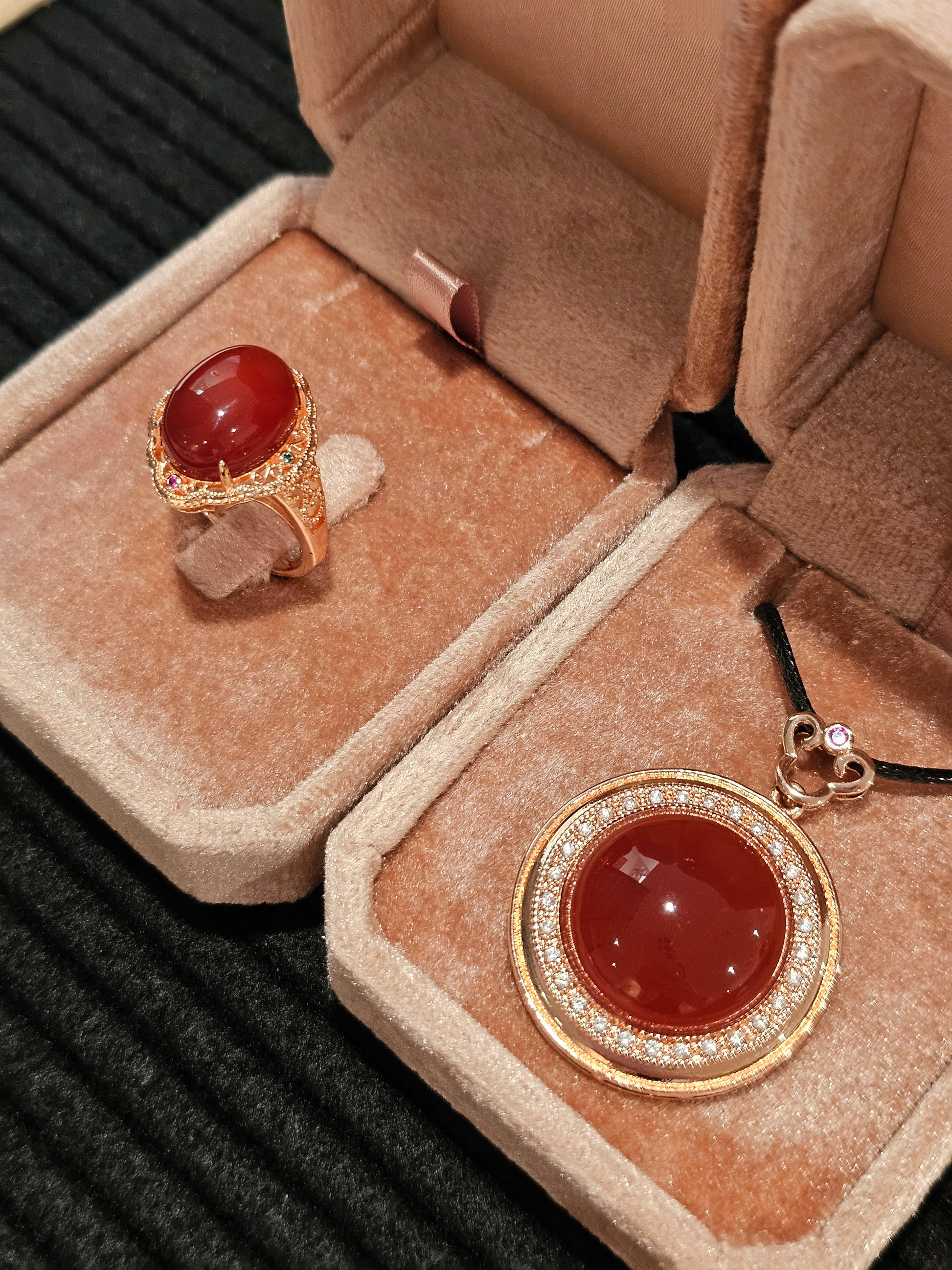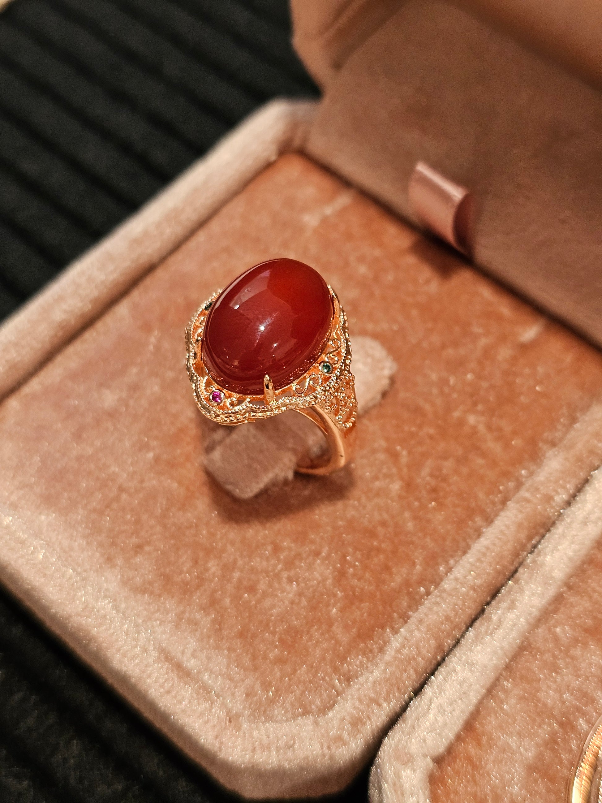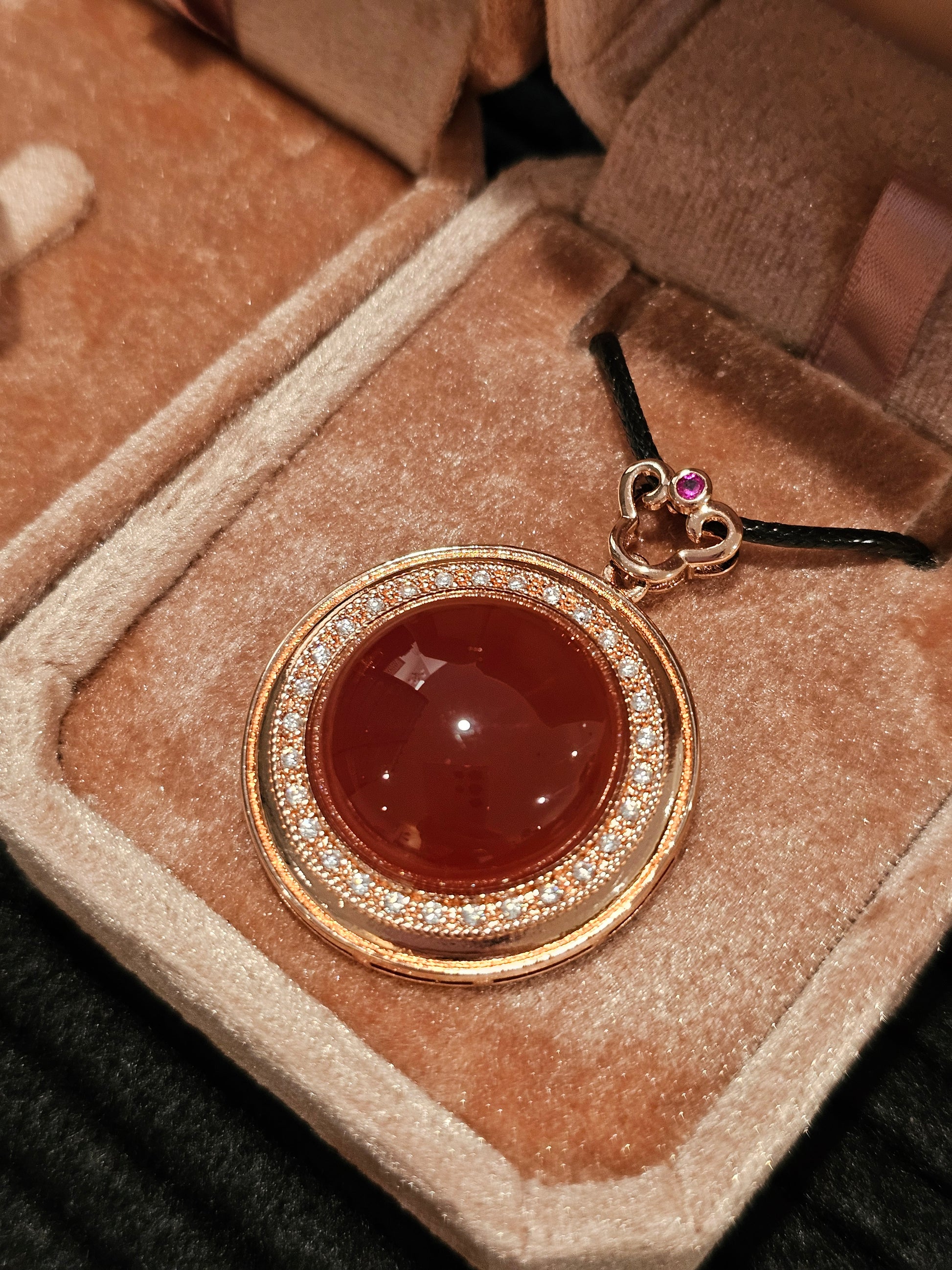 色澤濃潤如晨曦霞光,質地細膩溫潤。