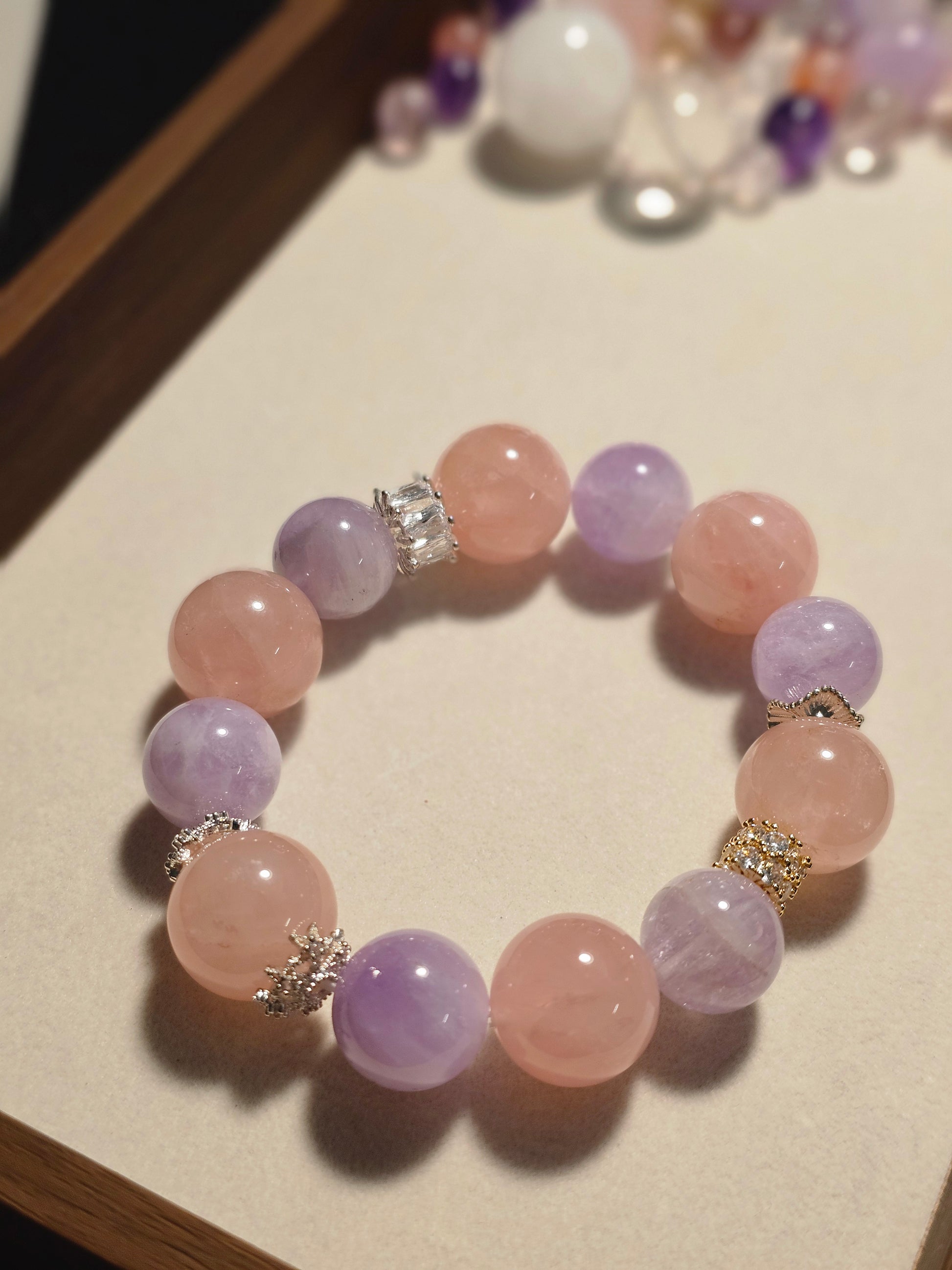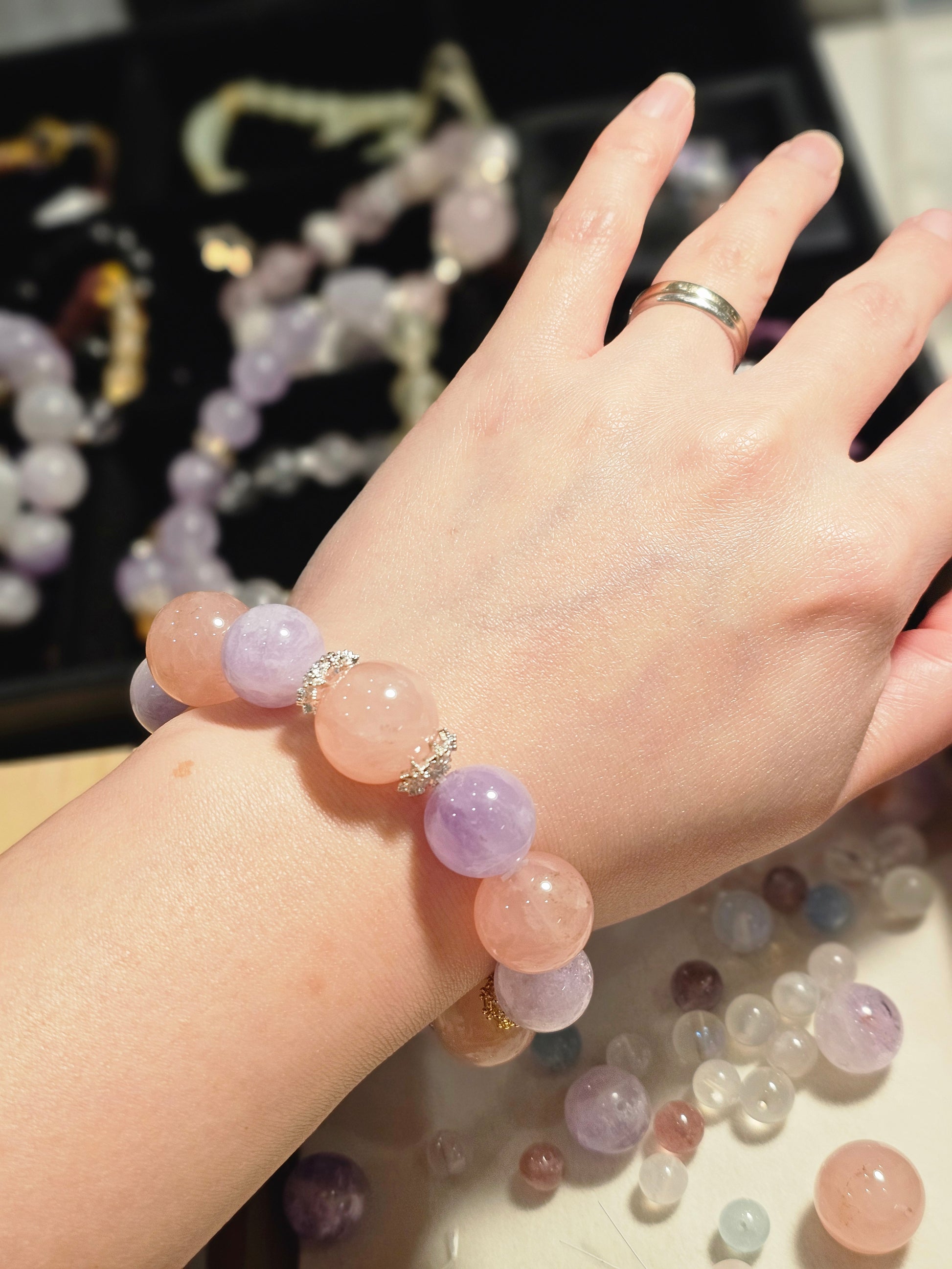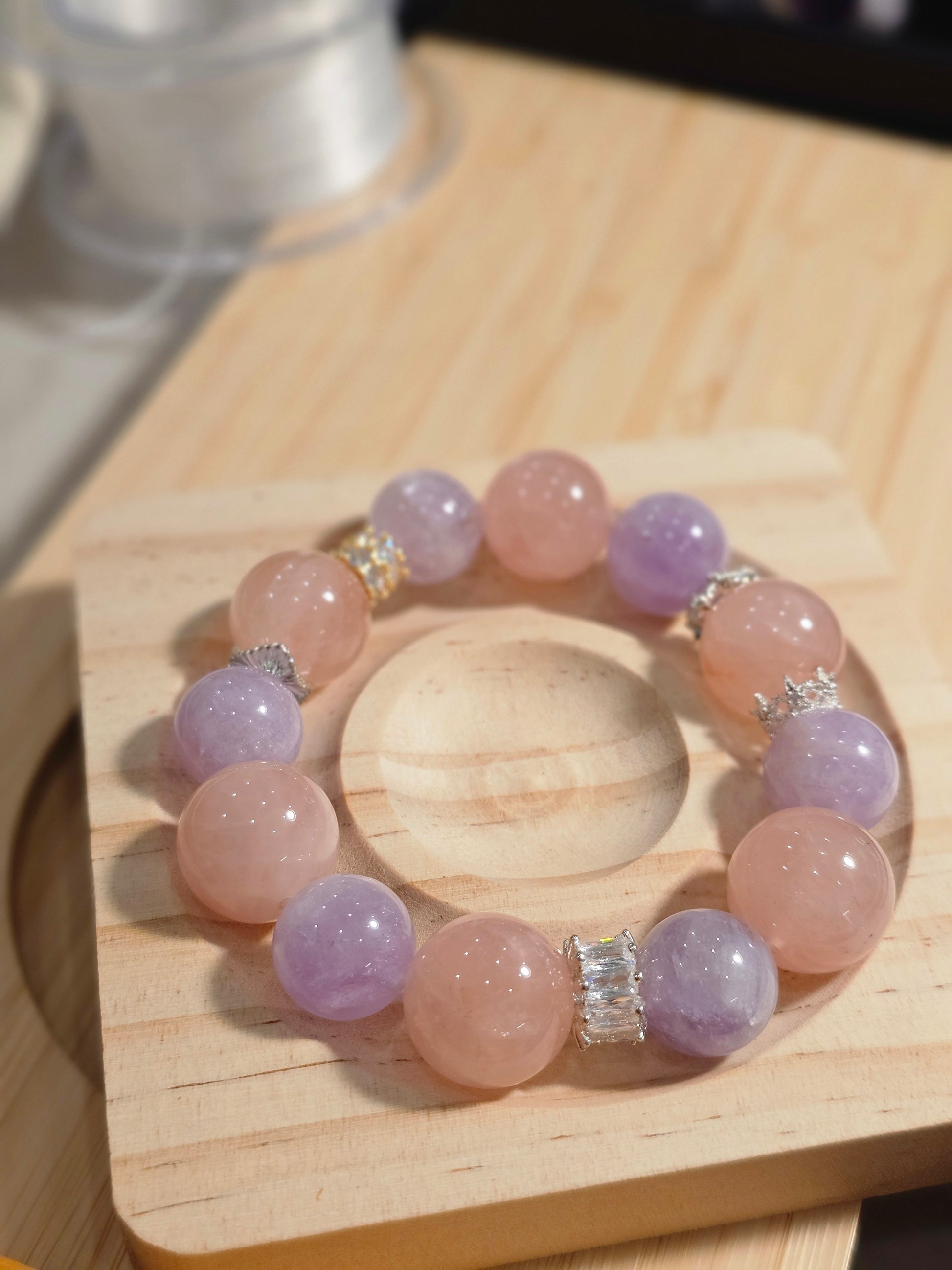 糖果系大珠能量手鏈 粉晶 × 紫鋰輝 14mm